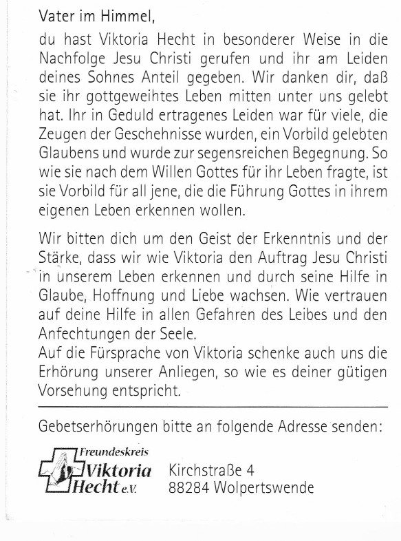 Fürbittgebet - Freundeskreis Viktoria Hecht e.V.
